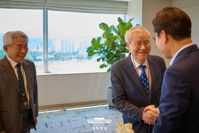 이재명 대통령이 지난 11일 원로 언론인인 조갑제·정규재 대표와 오찬 회동을 갖고 "대한민국의 대통령, 모두의 대통령이 되기 위해 국민 통합에 앞장서겠다"며 두 원로의 참여와 지혜를 요청했다고 이규연 홍보소통수석이 브리핑에서 밝혔다.