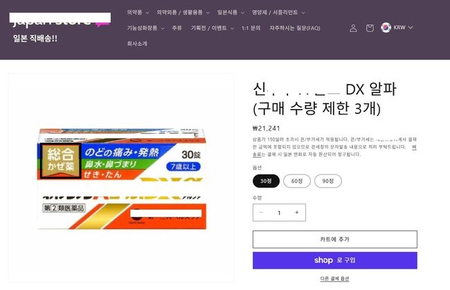 의약품 불법판매 · 알선 광고 적발사례 - 일반쇼핑몰 (감기약)