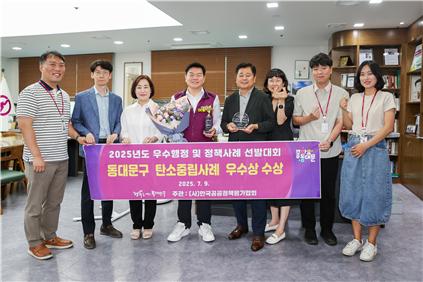 `2025년 우수 행정 및 정책사례 선발대회`서 우수상 수상동대문구는 행정 중심의 일방향 정책에서 벗어나, 주민과 민간이 함께 기획하고 실행하는 ‘탄소중립 거버넌스 모델’을 구축한 점에서 우수한 평가를 받았다. 구는 서울시 자치구 중 최초로 2023년 ‘2050 탄소중립 도시’를 선언하고, 2024년 4월에는 범구민 참여 조직인 ‘탄소 Talks 동대문’을 출범시키며 실천 기반을 마련했다.