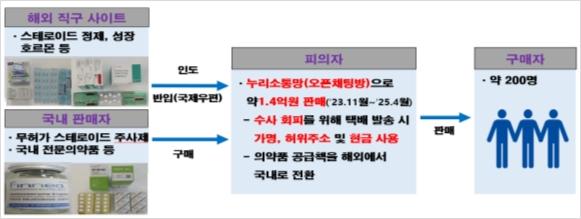 SNS 오픈채팅방 통해 1.4억 원 상당 무허가 스테로이드 불법 판매 적발