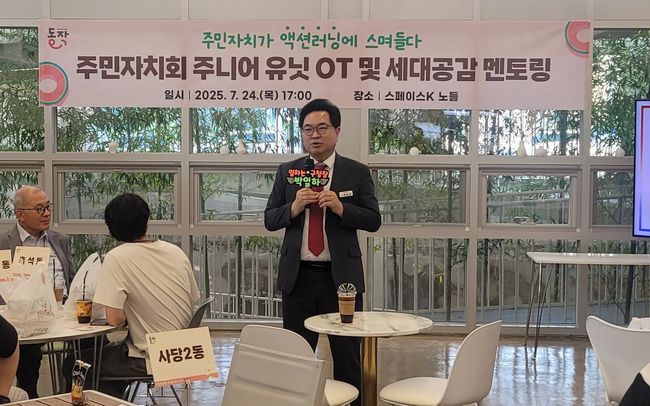 동작구(구청장 박일하)는 지난 24일 주민자치회 내 40대 이하 젊은 위원들로 구성된 ‘주니어 유닛’ 오리엔테이션을 개최하고, 시니어 위원들과 ‘세대공감 멘토링’ 시간을 가졌다고 25일 밝혔다.